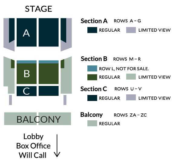 Accessible seating is available center floor area of sections A, B, and C.